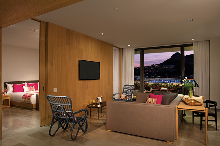 Embrace the Unlimited-Luxury® Life at This Chic, Adults-Only Resort in Cabo. Steps from Medano Beach on the Pacific Ocean, this adults-only, all-inclusive resort in a chic building overlooking Marina Cabo San Lucas is 2.5 miles from Cabo Dolphins. Breathless Cabo San Lucas is wonderfully different from other Cabo resorts. In addition to its ideal location on beautiful Medano Beach, one of the only safely swimmable beaches in the area, guests can experience the ultra-premiere pleasures of Unlimited-Luxury® – where everything is included. Our all-adult, “mix-and-mingle” atmosphere is heaven for the socially sophisticated. Live Big day and night with lively music, dancing, parties, sensational shows, and other surprises! Breathe Deep and rejuvenate with a world-class spa, stunning views, and 24-hour room service. It’s all about high-energy happenings, hip and luxurious accommodations in our 169 suites, relaxing moments, fabulous food, top-shelf drinks, and making new friends. Breathless Cabo San Lucas offers the best of both relaxation and entertainment that will captivate every guest’s senses. Sleek suites feature balconies or terraces with ocean views, plus free Wi-Fi, flat-screen TVs, minibars, and tea and coffeemakers. Upgraded 1- to 3-bedroom suites add separate living rooms and/or whirlpool tubs. All meals and drinks are complimentary. The 11 restaurants and bars include a rooftop lounge, gourmet dining, and a trendy tequila bar. Other amenities consist of an infinity pool, a spa, and a 24-hour fitness center.